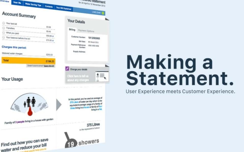 One of my early projects involved reimagining a water bill for a large utility provider. The challenge was transitioning their existing ‘boring’ document into something that served a greater purpose, something that was more than just a demand for payment. As well as being clear and visually pleasing, the new format had a stronger focus on the company’s social responsibility to reduce excessive water usage. Existing statements simply gave a consumption figure, but the customer had no context to what this meant for them personally. The updated version spelt it out. If you averaged 375 litres of water per day during the billing period, you were consuming the equivalent of a family of three living in a house. Not great news if you’re a single guy living in a flat!